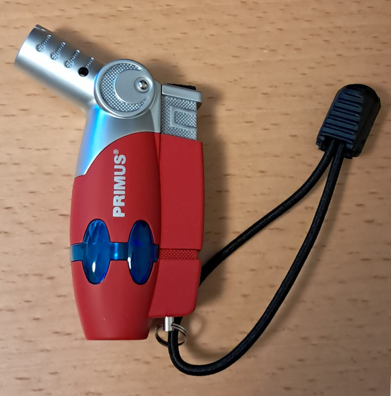 Motonetin halpis antoi periksi (pietso rikki) vajaan vuoden käytön jälkeen, joten oli pakko ryhtyä etsimään korvaavaa tuotetta. Tuohon hintaanhan olisi voinut toki hakea vain kourallisen samanlaisia lisää, mutta halusin jotain pykälän luotettavampaa. Myrskysytkiä on kaupan joka lähtöön: plasmalla, bensalla ja kaasulla. Primuksella on retkeilykäyttöön tarkoitettu PowerLighter III, pikku puhalluslamppu, jonka kävin nappaamassa Clasulta 22 euron hintaan. Mukana ei tule valmiiksi butaania, joten sellaista pitää hankkia, jollei satu jo nurkissa olemaan. Täyttö tapahtuu pohjasta tavallisella venttiilillä. Ostin punaisen maastosta erottuvan mallin, vaikka PowerLighteriä on tarjolla myös mustana.