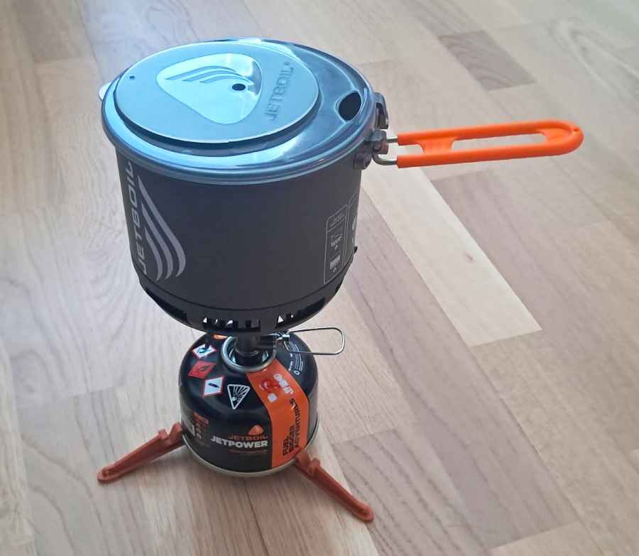 Kaasukeittimiä on hyvä olla mettä-gourmetin ja muihinkin tarpeisiin, joten niitä on sittemmin lipsahtanut kokoelmaan jo kuusi kappaletta. Uusimpana tulokkaana joukkoon liittyi 50-lahjana Jetboil Stash (kiitos Terpan), joka on pikemminkin kokonainen järjestelmä kova-anodisoituine kattiloineen, kansineen, polttimineen ja tukijalkoineen. Kompaktiin pakettiin saa lisäksi sijoitettua 100-grammaisen kaasupullon ja sytkän, joten kokonaisuudessa on selvästi ideaa: keittimen voi heittää helposti reppuun ilman, että tarvii keräillä sekalaisia osia erikseen. Poltin on normaali ruuvattava, eli sitä voi käyttää tarvittaessa minkä hyvänsä kattilan ja EN417-kierteellisen patruunan kanssa.